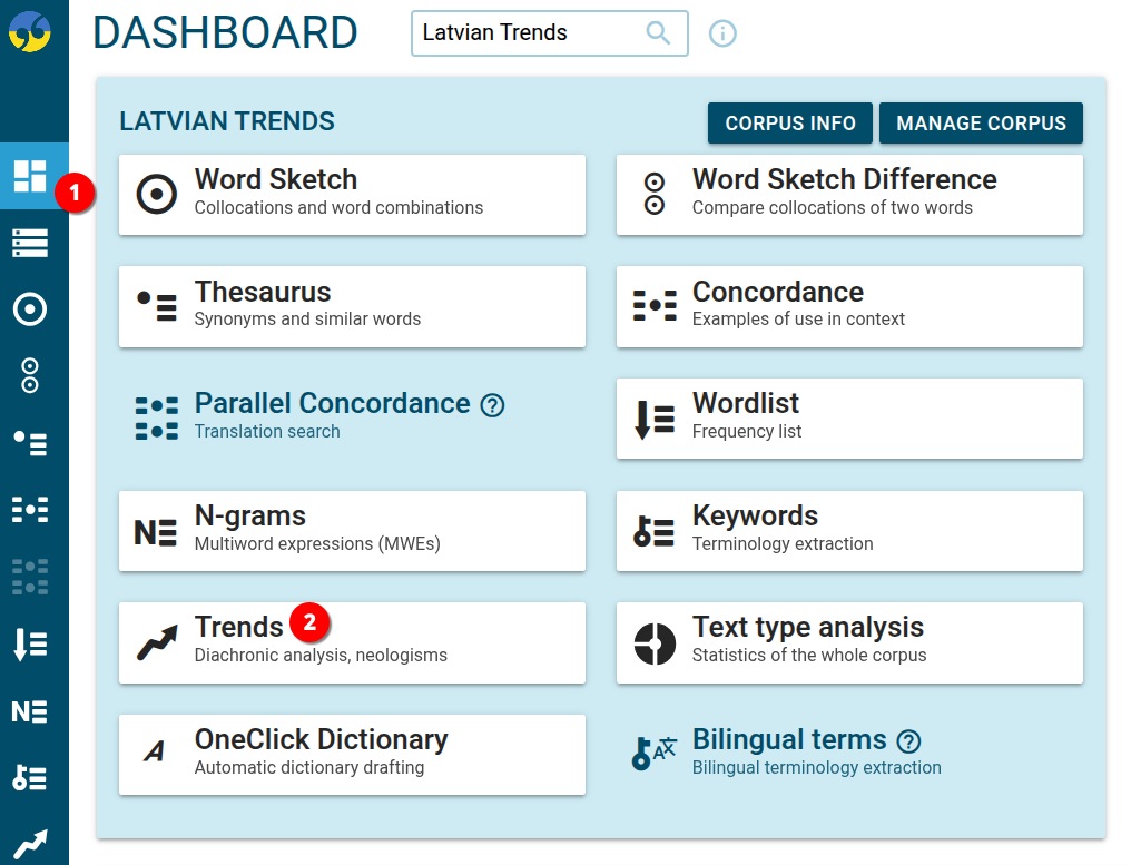 Sketch Engine offers a range of tools to work with this Latvian Trends corpus from news articles.